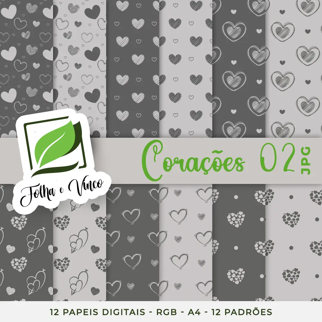 Folha e Vinco – Kit Corações 02 – Papel Digital