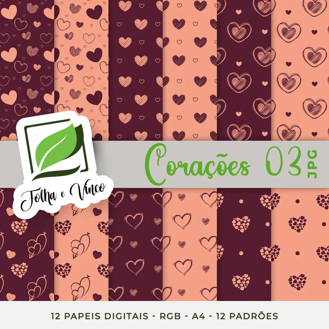 Folha e Vinco – Kit Corações 03 – Papel Digital