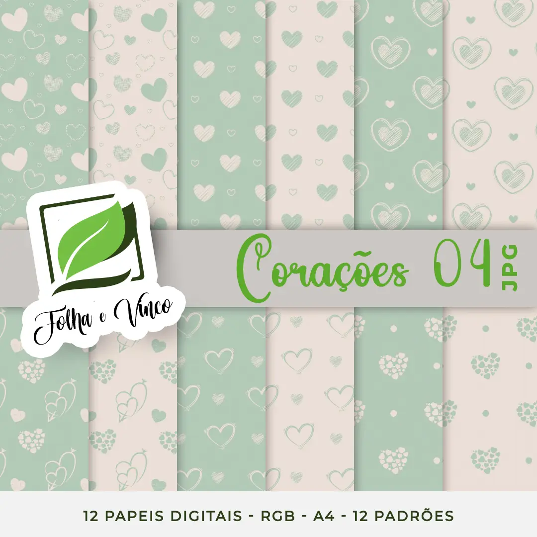 Folha e Vinco – Kit Corações 04 – Papel Digital